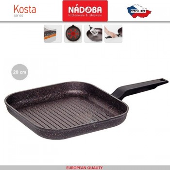 KOSTA Антипригарная гриль-сковорода, индукционное дно, 28 х 28 см, 5-ти слойное минеральное покрытие, Nadoba