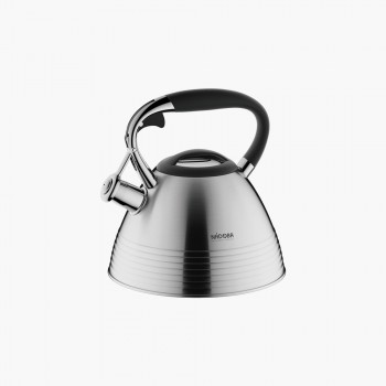Чайники серии Zelda изготовлены из высококачественной нержавеющей стали 18/10. Прочное трёхслойное капсульное дно изделий не деформируется и служит для равномерного распределения тепла по всей площади посуды. Безопасный и громкий широко открывающийся свисток позволяет наполнять чайник через носик, не открывая крышку, и вовремя проинформирует, что ..