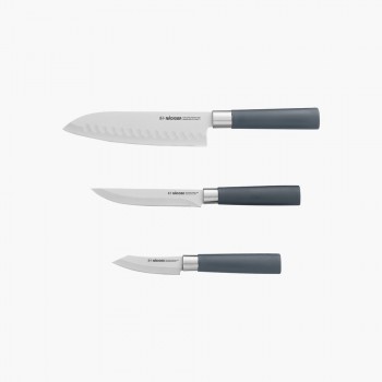 Традиционные японские ножи серии Keiko изготовлены из высококачественной нержавеющей стали, их лезвия остаются острыми долгое время. Ручки ножей выполнены из высокопрочного пластика и нержавеющей стали. Универсальный блок набора ножей изготовлен из керамики. Он позволяет хранить ножи в различном количестве и в произвольном порядке. Пластиковые вол..