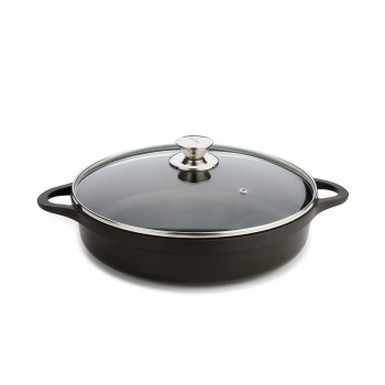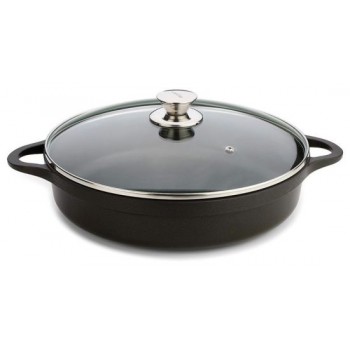 Низкая кастрюля, D 36 см, V 7 л, литой алюминий, серия BLACK SAUCEPAN + GLASS LID, Valira