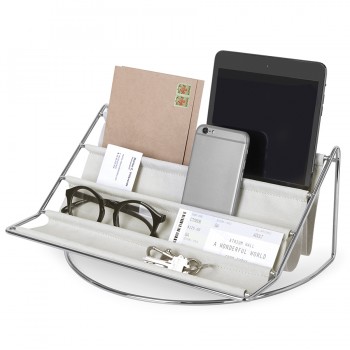 Органайзер для хранения небольших аксессуаров. Металлическая стойка и мягкие кармашки из замши идеально подходят для хранения очков, мобильных телефонов или ключей. Органайзер можно поставить на стол или повесить на стену при помощи небольших шурупов (входят в комплект). Кроме трёх кармашков предусмотрены дополнительные места для хранения: на задне..