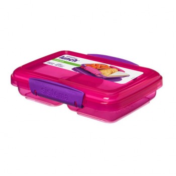 Идеальное решение для полноценного приема пищи вне дома. Раздельное хранение блюд – трехсекционный контейнер + баночка (150 мл). Подходит для использования в холодильнике и морозильной камере. Можно использовать в микроволновой печи без крышки. Сохраняет свежесть продуктов – силиконовый уплотнитель. Плотное закрытие – фирменные защелки Sistema..
