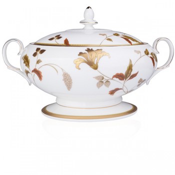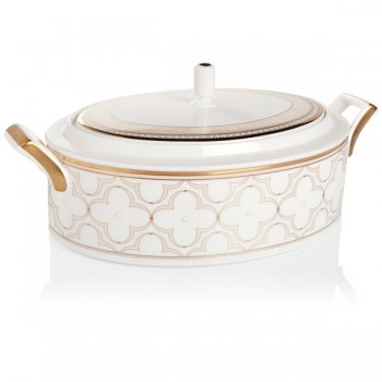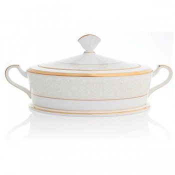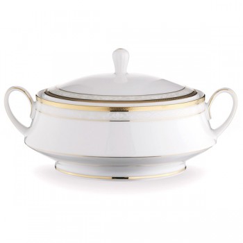 Блюдо для горячего с крышкой 2,5л "Айла, золотой кант", Фарфор костяной, Noritake, Япония