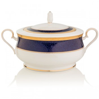Блюдо для горячего с крышкой 2,4л "Одесса Кобальт, золотой кант", Фарфор костяной, Noritake, Япония