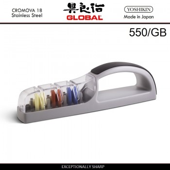 Механическое точило MinoSharp обеспечивает быструю и безопасную заточку лезвий в 2 этапа. Серия Global Classic G - коллекция больших ножей с длинными лезвиями и утяжеленными ручками. Универсальные модели для любых задач. Традиционно идеально сбалансированные ножи и впечатляюще острые лезвия, длительное время сохраняющие режущие с..