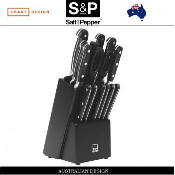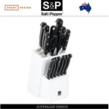 Австралийский бренд Salt&Pepper - создает красивую дизайнерскую посуду и аксессуары для дома с 1995 года. Серия BLADE - это современные качественные наборы ножей в стильных подставках из натурального дерева, окрашенного в белый и черный цвета. Цельнокованые лезвия изготовлены из высокоуглеродистой стали, отличаются прочностью и остр..