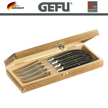 Ножи BBQ Steakmaster имеют специальные зубчики для более легкого разрезания стейков. В наборе 4 ножа. Можно мыть в посудомоечной машине. C приспособлениями Gefu вы станете настоящим виртуозом в на кухне! Более 70 лет немецкая компания Gefu производит кухонную утварь высочайшего ка..