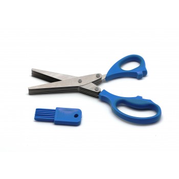 Разработано в Германии Произведено в Китае Кухонные ножницы для зелени "Atlantis" с 5-ю лезвиями предназначены для быстрого измельчения салата, зелени, трав, а также пластин ветчины, сыра или грибов. Лезвия изготовлены из высококачественной нержавеющей стали с ручной заточкой. Ручки имеют специальные силико..