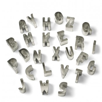 Произведено в Италии Кондитерские вырубки "Английский алфавит" от всемирно известного производителя кондитерских и кулинарных приспособлений Paderno (Italy). Универсальный набор кондитерских вырубок подходит для приготовления печенья, крекеров, мастики. Идеально подходит для создания поздравительных надписей на тортах, пиро..