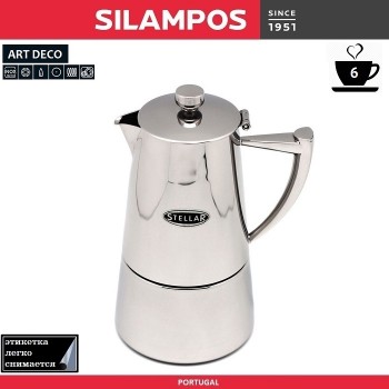 Гейзерная кофеварка ART DECO от Silampos изготовлена из нержавеющей стали 18/10. Подходит для любых плит, включая индукционные. Диаметр дна - 10 см. Этикетка "Stellar" (на фото) снимается. Посуда марки Silampos изготовлена из высококачественной нержавеющей стали 18/10 - это безопасный и хорошо зарекомендовавший себя сплав ..