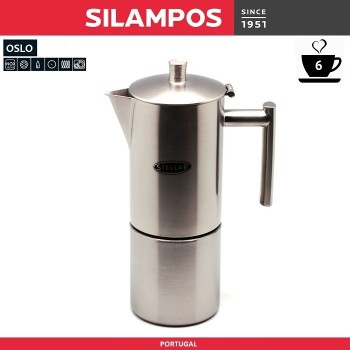 Гейзерная кофеварка OSLO, на 6 чашек, индукционное дно, Silampos