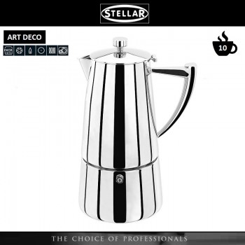 Гейзерная кофеварка ART DECO на 10 чашек, 600 мл, сталь 18/10, STELLAR