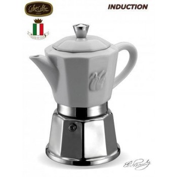 Италия Элегантная итальянская гейзерная кофеварка G.A.T. CHIC. Общий объем рассчитывается исходя из принятого объема чашки эспрессо - 50 мл. Подходит для индукционных, газовых, электрических, стеклокерамических плит. Изготовлена из фарфора и пищевого алюминия, рекомендованного для контакта с пищевыми ..