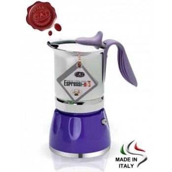 Италия Современная итальянская гейзерная кофеварка G.A.T. модель DIVA. Подходит для любых плит, включая индукционные. Изготовлена из пищевого алюминия, снаружи на нижней части - эмалевое покрытие. Ручка выполнена из жаропрочного бакелита, не нагревается в процессе приготовления, защищая от ожогов. Внутрен..