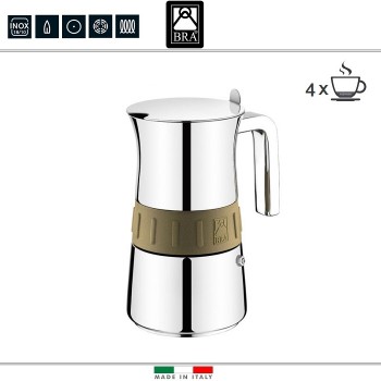 Кофеварка гейзерная ELEGANCE Gold, на 4 порции, индукционное дно, нержавеющая сталь, BRA