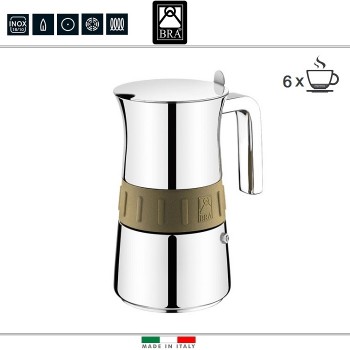 Кофеварка гейзерная ELEGANCE Gold, на 6 порций, индукционное дно, нержавеющая сталь, Gold, BRA