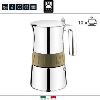 Кофеварка гейзерная ELEGANCE Gold, на 10 порций, индукционное дно, нержавеющая сталь, BRA