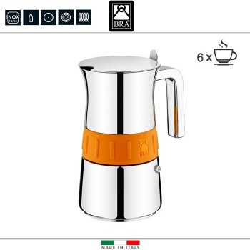 Кофеварка гейзерная ELEGANCE Orange, на 6 порций, индукционное дно, нержавеющая сталь, BRA