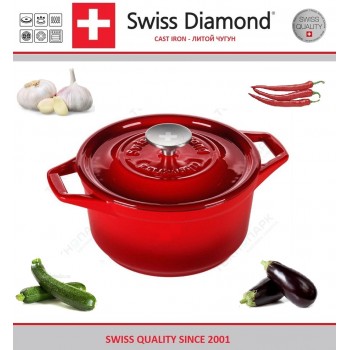 Кастрюля чугунная, 1.7 л, D 20 см, эмалевое покрытие, цвет красный, серия Prestige Cast, Swiss Diamond