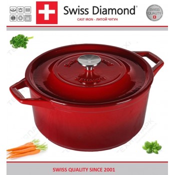 Кастрюля чугунная, 4.7 л, D 25 см, эмалевое покрытие, цвет красный, серия Prestige Cast, Swiss Diamond