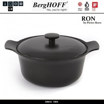 Кастрюля-жаровня RON чугунная для плиты и духовки, 4.2 л, 24 см, цвет черный, BergHOFF