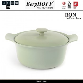 Кастрюля-жаровня RON чугунная для плиты и духовки, 4.2 л, 24 см, цвет зеленый, BergHOFF