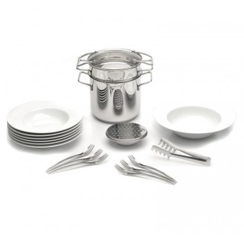 ОписаниеПолный набор для приготовления пасты любой длины и формы. Кастрюля из нержавеющей стали 18/10 быстро нагревается, экономя электроэнергию. Перфорированная вставка облегчает слив, становясь дуршлагом, - ее нужно просто вынуть из кастрюли. Разумеется, вы можете использовать кастрюлю и саму по себе для приготовления супов. Используя вставку, вы..