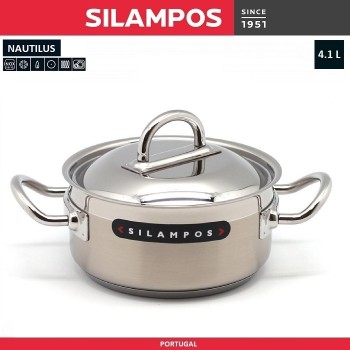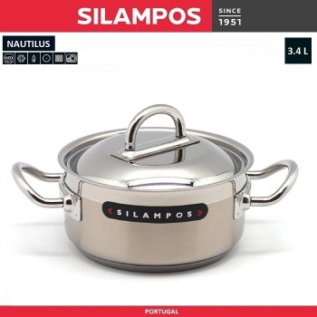 Коллекция NAUTILUS от Silampos - португальского бренда, специализирующегося на производстве высококачественной кухонной посуды. Подходит для всех типов плит, включая индукционные. Можно использовать в духовом шкафу (180-220С). Все изделия производятся из нержавеющей стали марки 18/10 - сплава хрома и никеля без посто..