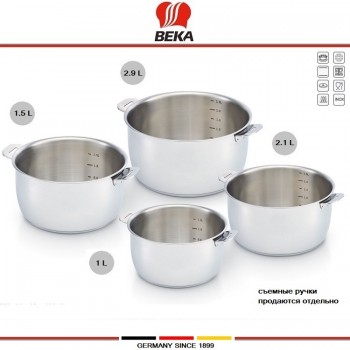 Посуда премиум-класса от немецкой фирмы BEKA - надежная репутация, высокое качество, дизайн и продуманность. Коллекция Beka SELECT - современная эргономичная посуда-конструктор, удобная в эксплуатации и компактная в хранении. Съемные ручки (продаются отдельно), в зависимости от модели, легко превращают кастрюлю в сотейник или сот..