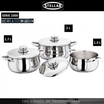 Набор кастрюль STELLAR 1000, 3 шт, 1.3 / 1.7 / 2 литра, сталь 18/10, STELLAR