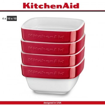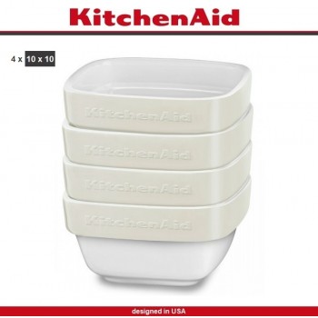 Серия современной керамической посуды Ceramic от KitchenAid - известного американского бренда изделий премиум-класса. В наборе 4 квадратных формы (рамекина), объемом 220 мл (10 х 10 х 5 см). Подходит для духовых шкафов и микроволновых печей. Стильный привлекательный дизайн. Можно мыть в посудомоечной маши..