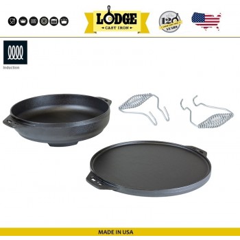 MULTI Многофункциональный набор: гриль-сковорода + казан-жаровня + 2 ручки, литой чугун, Lodge, США