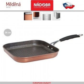 MEDENA Антипригарная гриль-сковорода, индукционное дно, 26 x 26 см, гранитное покрытие, Nadoba