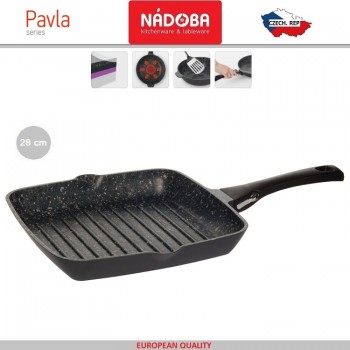 PAVLA Антипригарная гриль-сковорода со съемной ручкой, индукционное дно, 28 х 28 см, минеральное покрытие, Nadoba