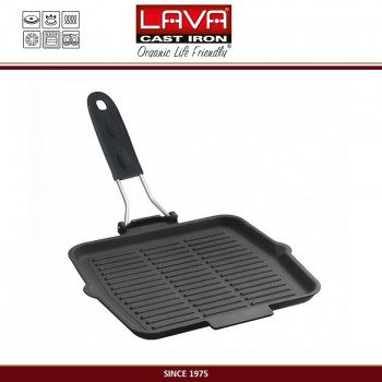 Гриль-сковорода чугунная со складной ручкой, 24 x 24 см, LAVA