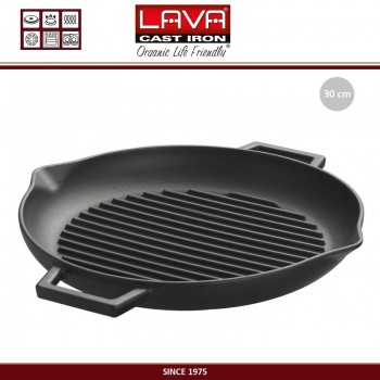 Гриль-сковорода ECO чугунная с двумя ручками, D 30 см, LAVA