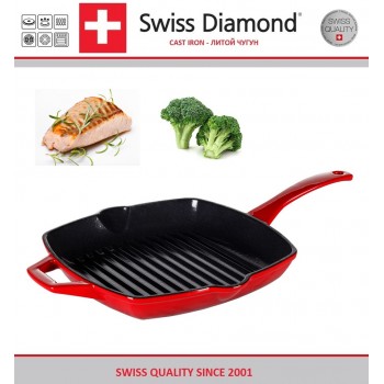 Гриль-сковорода, 26 х 26 см, эмалевое покрытие, индукционное дно, цвет красный, серия Prestige Cast, Swiss Diamond