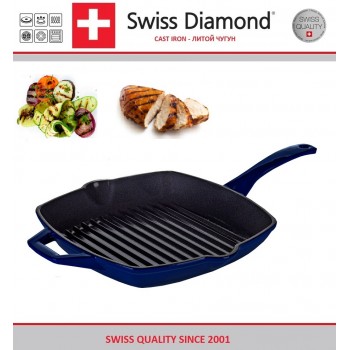Гриль-сковорода, 26 х 26 см, эмалевое покрытие, индукционное дно, цвет синий, серия Prestige Cast, Swiss Diamond
