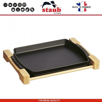 Чугунная посуда Staub производится во Франции. Подходит для всех типов плит, включая индукционные. Подходит для духовки. Рекомендована легендарным мишленовским поваром Полем Бокюзом (Paul Bocuse) и другими известными поварами. Блюдо Specials на деревянной подставке подходит для приготовления разнообразных блюд в духовке, плитах с ..