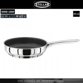 Антипригарная сковорода-сотейник STELLAR 1000 с покрытием Greblon, 24 см, сталь 18/10, STELLAR