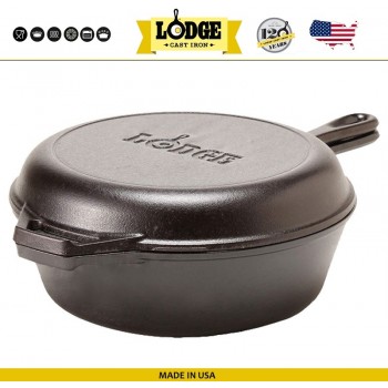 Сковорода глубокая с чугунной крышкой, две ручки, D 26 см, литой чугун, Lodge
