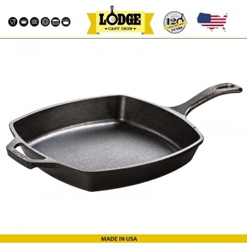 Сковорода квадратная чугунная, 26.5 х 26.5 см, литой чугун, Lodge