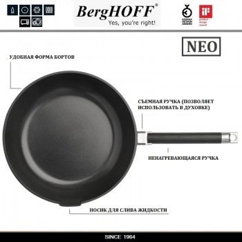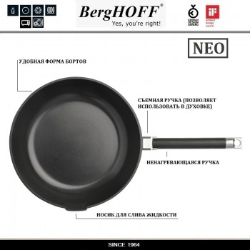 Антиприагрная сковорода NEO со съемной ручкой для плиты и духовки, D 28 см, индукционное дно, BergHOFF