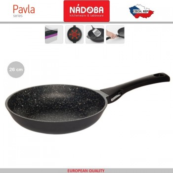 PAVLA Антипригарная сковорода со съемной ручкой, индукционное дно, D 26 см, минеральное покрытие, Nadoba