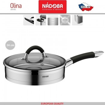 Сковорода-сотейник OLINA, индукционное дно, D 24 см, нержавеющая сталь 18/10, Nadoba