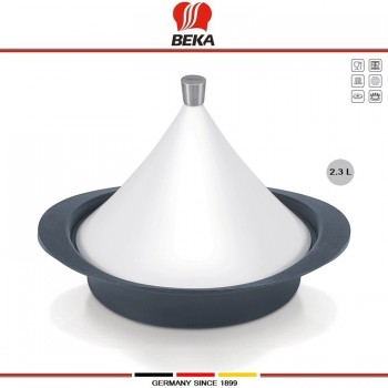 Посуда немецкой фирмы BEKA - надежная репутация, высокое качество, дизайн и продуманность. Чугунный тажин Kitchen Aids от Beka идеален для приготовления различных блюд. Подходит для любых плит, включая индукционные. Подходит для духовки. Дно из литого чугуна с эмалевым покрытием. Чугун лучший материал для деликат..