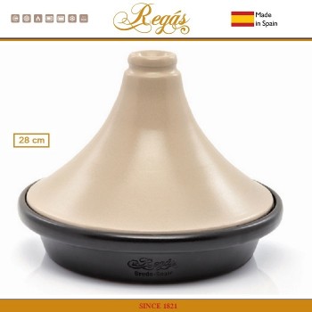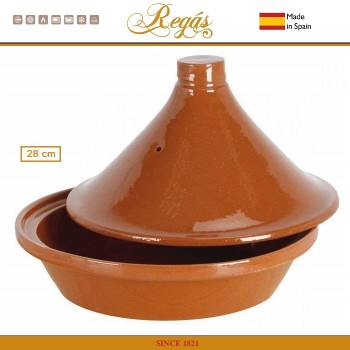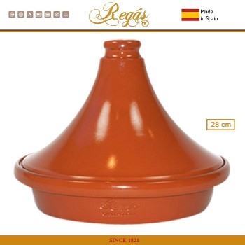 Тажины ручной работы от испанского бренда Regas, специализирующегося на производстве посуды из натуральной глины с 1821 года. Диаметр 28 см, объем 1.6 литра. Подходит для приготовления блюда до 6 персон. Подходят для духовки. Подходят для газовых, электрических, стеклокерамических, галогеновых плит. Изготовлены из красной гл..