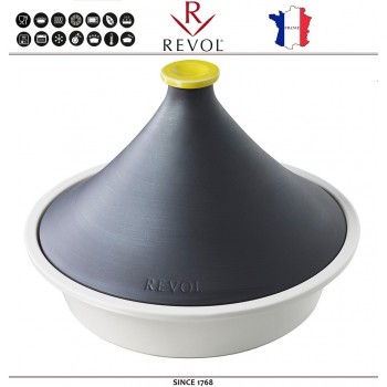 REVOLUTION 2 Тажин для плиты и духовки, 3 литра, D 32 см, керамика, цвет сланец-серебро, REVOL, Франция