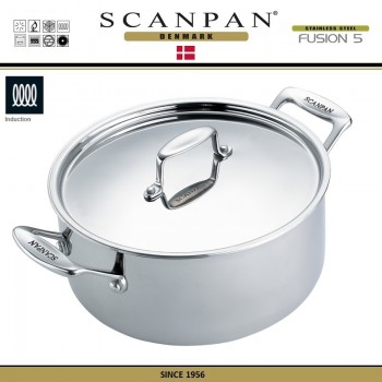 Датская посуда и аксессуары SCANPAN - это подлинно европейская посуда премиум-качества. Серия Fusion5 SCANPAN - элегантная кухонная посуда из нержавеющей стали марки 18/10 с зеркальной полировкой. Подходит для любых плит, включая индукционные. Подходит для духовых шкафов (max 220 °С). Подходит для посудом..