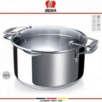 Кастрюля CHEF Pratique с крышкой-дуршлагом, 5 л, D 24 см, сталь нержавеющая 18/10, Beka